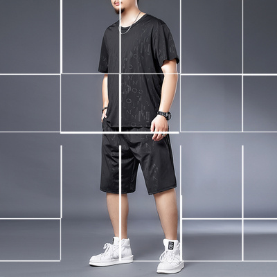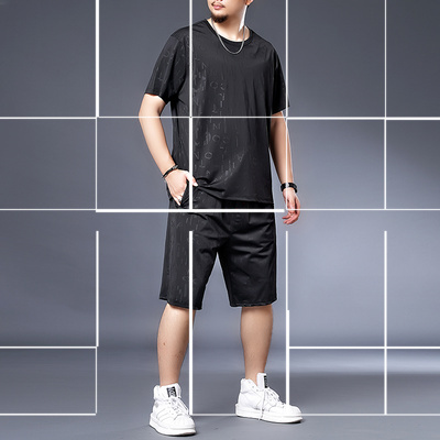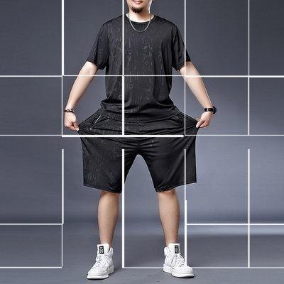 Bộ quần áo lụa băng kích thước lớn của nam giới quần áo thể thao mỏng nhanh khô vào mùa hè cộng với phân bón để tăng trang phục thường ngày cho nam Bộ đồ hai mảnh ngắn tay - Bộ đồ