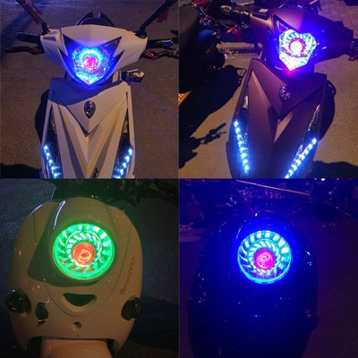 . Bóng ma lửa xa và gần đèn pha điện biến đổi phổ quát mắt thiên thần chói đèn dẫn nổ đèn nhấp nháy đèn xe máy đầy màu sắc - Đèn xe máy