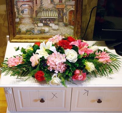 Bục được trang trí bằng hoa giả, hoa giả Khách sạn được trang trí bằng hoa trong phòng hội nghị của nhà hàng. - Hoa nhân tạo / Cây / Trái cây