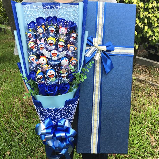 Búp bê hoạt hình bó hoa quà tặng sinh nhật cho bạn gái màu xanh chất béo leng keng mèo bó hoa bằng tay tốt nghiệp Giáng sinh Ngày lễ tình nhân - Hoa hoạt hình / Hoa sô cô la