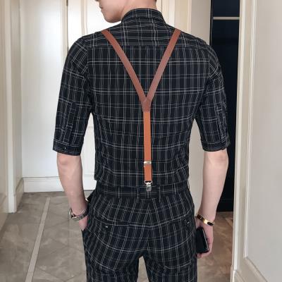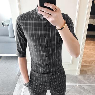 Cao cấp thợ cắt tóc tiệm cắt tóc thợ làm tóc hộp đêm quán bar quần áo làm việc áo sơ mi nam áo sơ mi chín điểm yếm - Bộ đồ