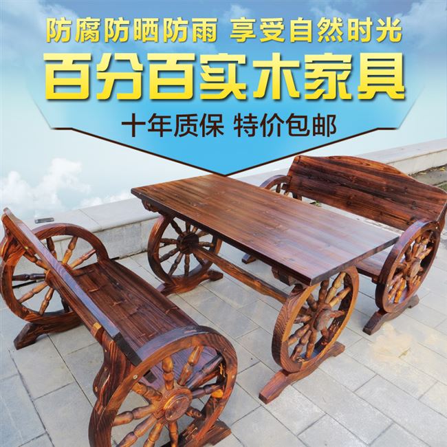 Đồ nội thất bằng gỗ rắn chống ăn mòn ngoài trời Bàn ghế ăn Trung Quốc kết hợp ban công sân vườn Bàn ghế thư giãn Ghế ba bánh - Bàn ghế ngoài trời / sân