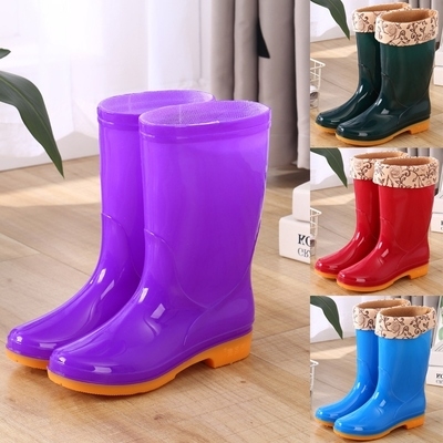 . Giày đi mưa dành cho nữ giày đi mưa ống cao giày ống dài giày nước cộng với nhung giày cao su không trơn trượt giày thời trang giày đi mưa thời trang ủng cao su ống giữa - Rainshoes