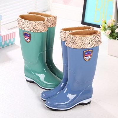 Giày đi mưa nữ ống cao ủng đi mưa nữ giày ống dài giày nước plus nhung giày cao su chống trượt overshoes phiên bản hàn quốc ống cao mùa đông - Rainshoes