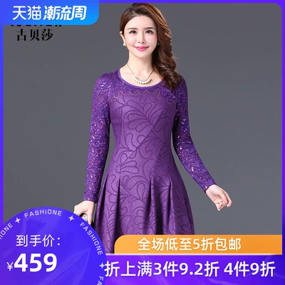 Gu Beisha của phụ nữ mùa thu và mùa đông là váy mỏng và lưng cao chiết eo chữ A váy mẹ thêu ren tự trồng trọt - A-Line Váy