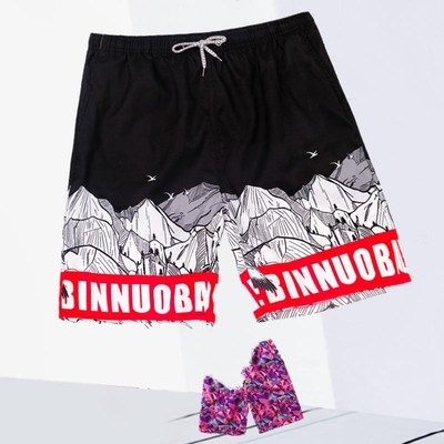 Lưới màu đỏ nóng đồ bơi quần bơi nam boxer năm điểm đi biển cặp đôi quần bơi nam quần bơi chống vụng về kích thước lớn - Quần bãi biển