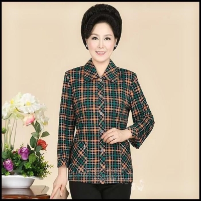 Miễn phí vận chuyển áo khoác trung niên và cao tuổi áo khoác mùa xuân của phụ nữ dài tay áo sơ mi mẹ váy đàn ông trung niên cộng với kích thước áo mùa xuân và mùa thu - Áo sơ mi dài tay