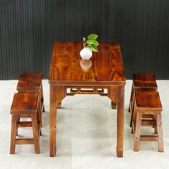 Miễn phí vận chuyển bàn ghế carbon hóa chống ăn mòn đồ nội thất ngoài trời căn hộ nhỏ gỗ rắn đồ ăn nhanh bàn ăn khách sạn bàn ghế cổ kết hợp bộ bàn ghế - Bàn ghế ngoài trời / sân