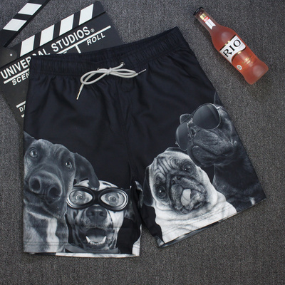 Mùa hè mới bên bờ biển kỳ nghỉ bãi biển quần nam in nhanh khô quần short hình con chó quần bơi rộng rãi quần năm điểm thủy triều - Quần bãi biển