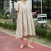 Mùa hè mới năm điểm tay áo váy nữ phiên bản Hàn Quốc lỏng lẻo và mỏng giữa lưng cao eo cổ chữ V Váy búp bê dài qua đầu gối váy dài - Váy eo cao