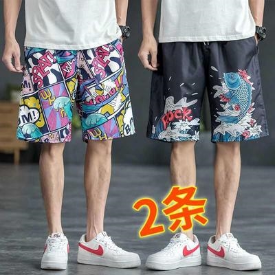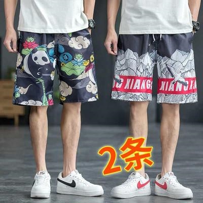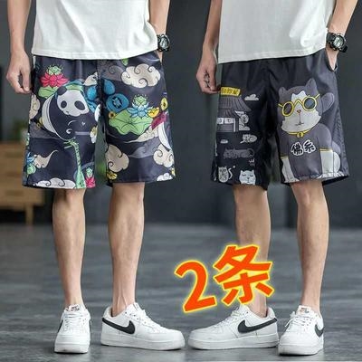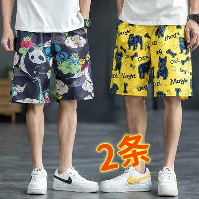 . Mùa hè phong cách mới ở nhà in ấn giản dị quần đi biển quần short nam rộng rãi cộng với kích thước quần năm điểm nhanh khô quần lớn nam - Quần bãi biển