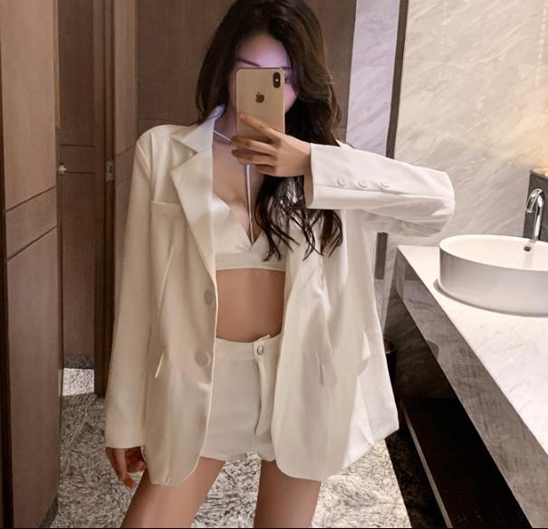 . Mùa xuân 2020 mới buông lỏng áo khoác dài tay Hàn Quốc áo khoác lửng trắng nhỏ phù hợp với áo khoác nữ - Business Suit