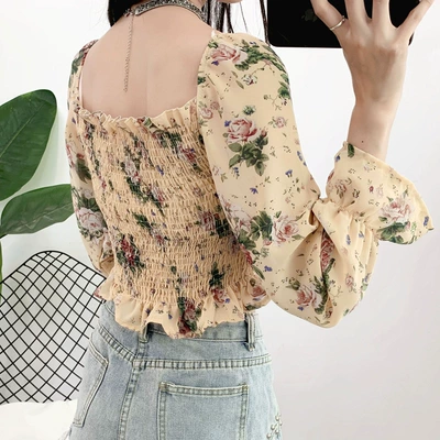 Mùa xuân mới 2020 hè áo voan nước ngoài nữ giản dị in áo sơ mi rộng phiên bản Hàn Quốc áo sơ mi dài tay hoa - Áo sơ mi chiffon ren