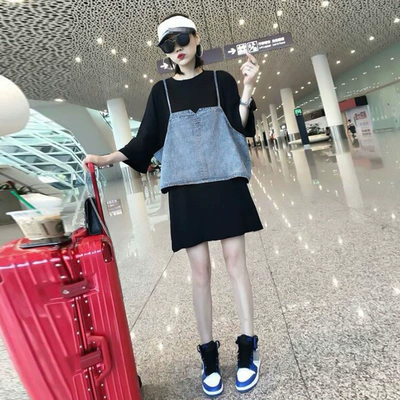 Nhà ga châu Âu 2021 phụ nữ mới mùa thu và mùa hè Xu hướng châu Âu thời trang denim sling phù hợp với váy áo thun đen - váy đầm