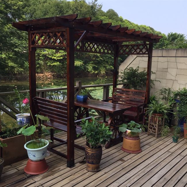 Nhà máy gian hàng nhà gỗ chống ăn mòn bán hàng trực tiếp giàn nho gỗ rắn vườn leo cây mía hoa đứng ngoài trời bàn ghế sân vườn - Bàn ghế ngoài trời / sân