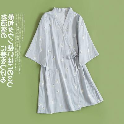 Nửa tay áo ngủ nữ cotton tinh khiết Nhật Bản áo ngủ kimono cotton gạc mùa hè mỏng kích thước lớn áo choàng tắm rộng rãi đồ ngủ - Đêm đầm