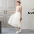Quần áo phụ nữ mùa xuân và mùa thu Phiên bản Hàn Quốc của chiếc địu ngọt ngào lưới khâu phương thức áo vest cotton đáy váy dài - Váy dài