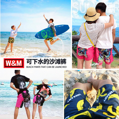 Quần đi biển bán chạy bên bờ biển khô nhanh quần đi biển quần đùi nam quần bơi mùa xuân nóng in quần quý có thể được tung ra với kích thước lớn - Quần bãi biển