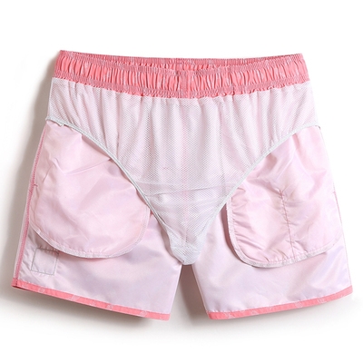 Quần đi biển của nam giới quần đùi rộng rãi cỡ lớn màu hồng kỳ nghỉ bên bờ biển nhanh khô Quần bơi suối nước nóng dành cho nam giới có thể được tung ra với một lớp lót thủy triều - Quần bãi biển