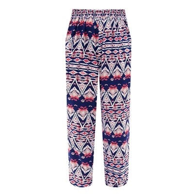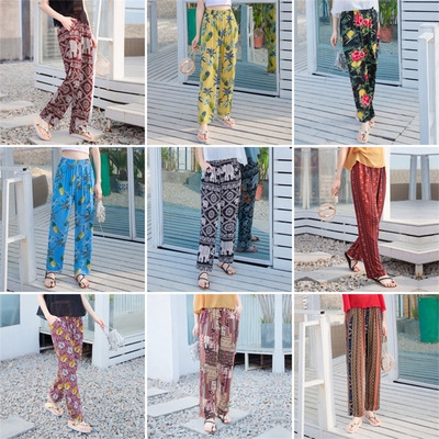 Quần đi biển của phụ nữ mùa hè mỏng quần dài giản dị in cotton lụa ống rộng quần mẹ đi nghỉ quần thẳng chân - Quần bãi biển