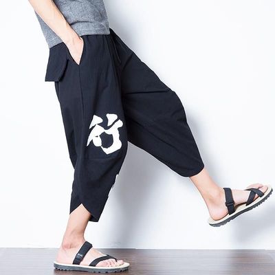 Quần ống rộng của nam giới cắt quần rộng rãi quần đi biển mùa hè Quần âu phong cách Trung Quốc quần short nam xu hướng quần harem - Quần bãi biển