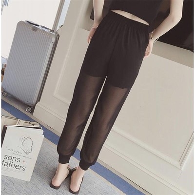 Quần tây cắt xén voan của phụ nữ mùa hè phong cách Hàn Quốc quần ống rộng và eo mỏng mát mẻ quần âu đi biển của phụ nữ quần harem 101 - Quần bãi biển