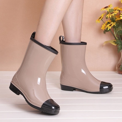 Thời trang mới ủng đi mưa ống cao nữ xuân hè, thu đông giày nước chống trơn trượt có thể thêm vớ lông cừu giữ ấm cho người lớn - Rainshoes