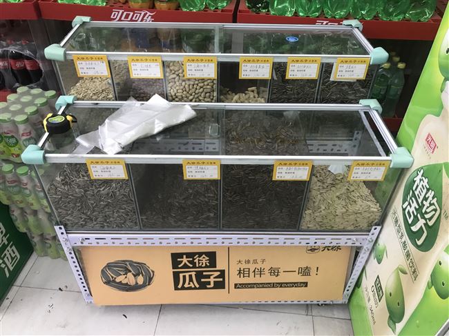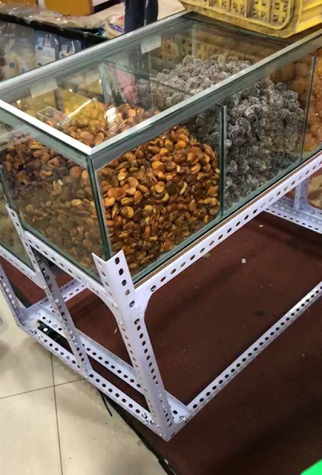Thức ăn bậc thang Thâm Quyến Đông Quan Đậu phộng Trái cây sấy khô Hạt giống Quýt Vỏ số lượng lớn Hạt và Dầu Kệ trưng bày Ròng rọc - Kệ / Tủ trưng bày
