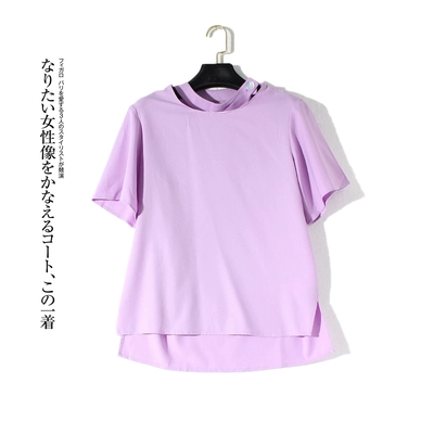 -US quầy giải phóng mặt bằng 2020 mùa hè nữ màu đơn giản chia cổ tròn tay áo ngắn tay voan L463 - Áo sơ mi chiffon ren