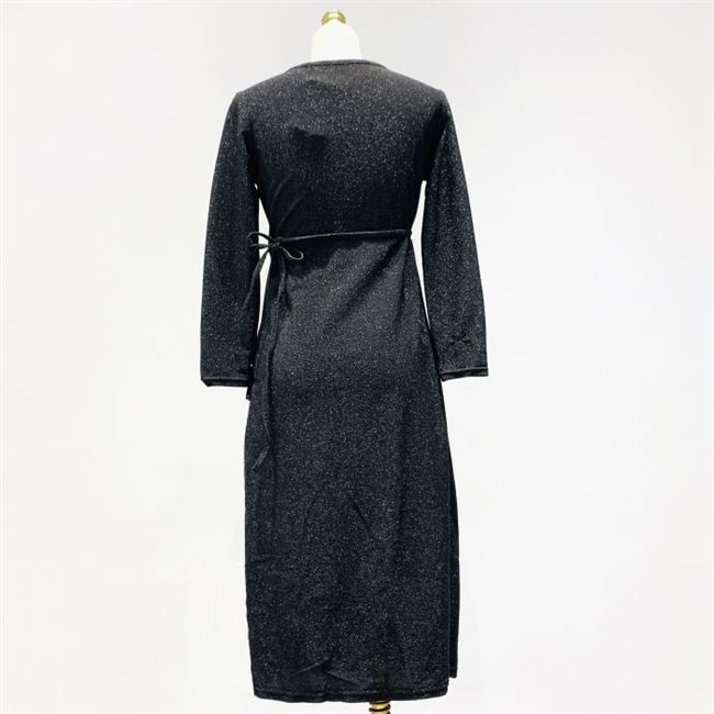 Váy xuân thu mới 2020 phiên bản Hàn Quốc eo cao thon gọn màu thanh khiết khí chất tay dài váy midi lụa sáng màu cổ chữ v - Váy eo cao